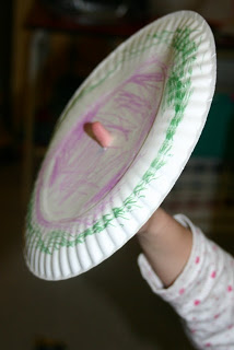 Later we made paper plate umbrellas. I cut a small hole in the center of each paper plate and then asked the children to color one side of it. When they were finished the children put their pointer finger through the hole and walked around as we chanted this cute rhyme. The idea came from Preschool Rainbow.