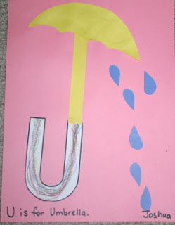 After the story we made letter “U” umbrellas loosely based on the tutorial from No Time for Flashcards.