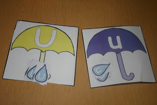 Another center activity today was this umbrella letter match from Home Grown Hearts. The children were to match the raindrops to the correct capital or lower case letter “U”.