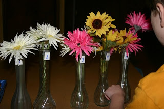 This center activity was the hit of the morning. I took 5 vases and numbered them 1-5. Then I set out 15 silk flowers. The children were to place the correct number of flowers in each vase. This activity was a fun way for the children to learn one-to-one correspondence.