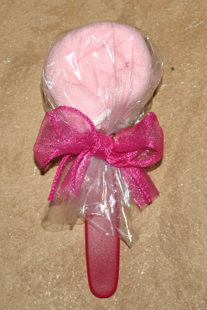 That’s all there is to it. You can whip up several of these washcloth lollipops in no time.