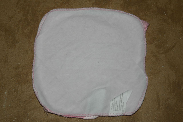 Step 1: Lay the two washcloths on top of each other with the wrong sides facing up.
